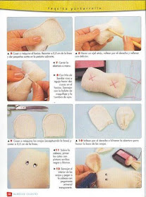 - Gorro: para realizar la copa cortar un rectángulo de lienzo, fruncir en la parte superior y en la parte inferior realizar tablas. Zócalo del gorro: cortar un rectángulo de lienzo de 10 x 15 cm, doblar y pegar. Luego colocar la copa al zócalo del gorro.
