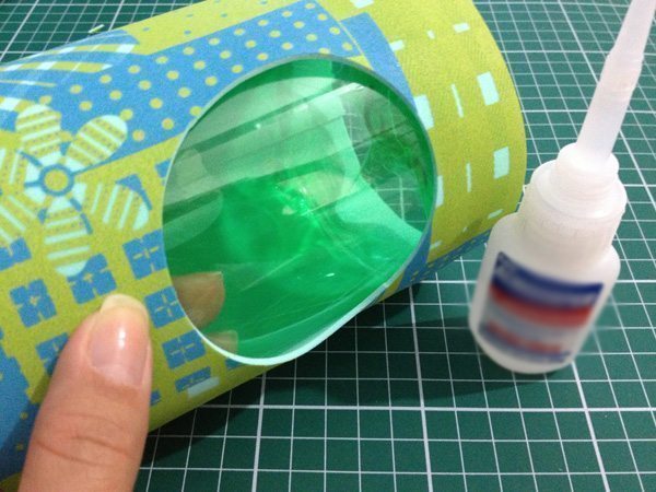 Poco después, envuélvalo en botella de plástico con EVA. Arena suavemente la parte de la botella donde comenzará el pegamento. Y el corte de parte del círculo será hacia adelante.