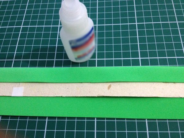 Luego, cortar una tira de papel con el tamaño Paraná de 4 cm x 25 cm. Comience pegando EVA por el centro. Pegue la segunda mitad de la primera oleada.